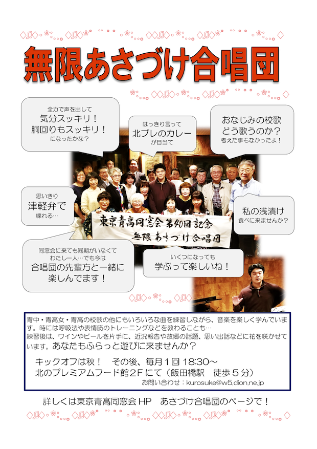 この合唱団の本番は、東京青高同窓会の総会・懇親会です!
